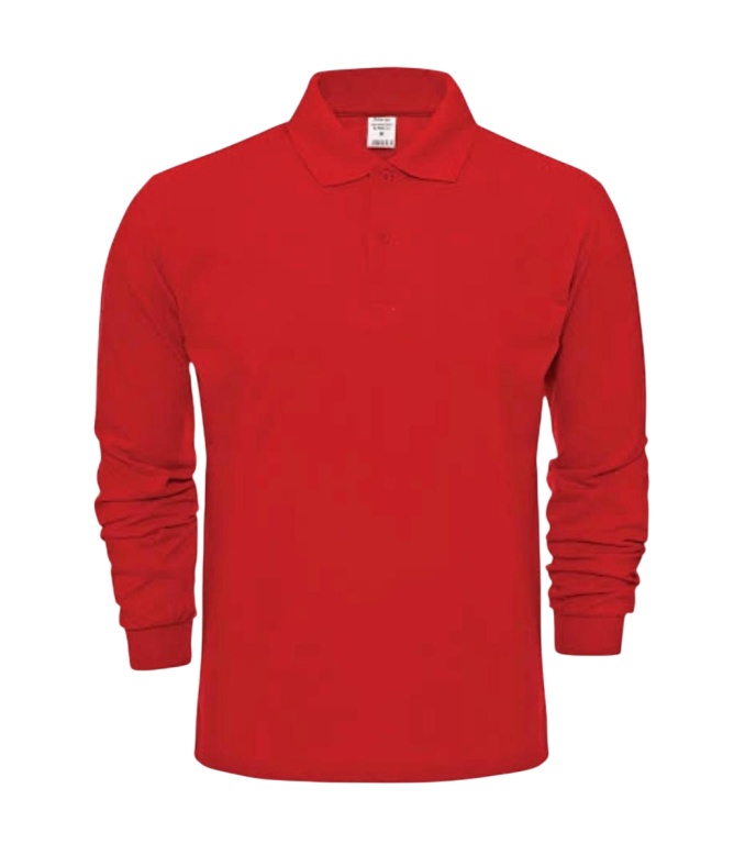 2. Uzun kollu polo yaka tişört: kırmızı renkli olup, herhangi bir arma, model, resim, desen içermez.